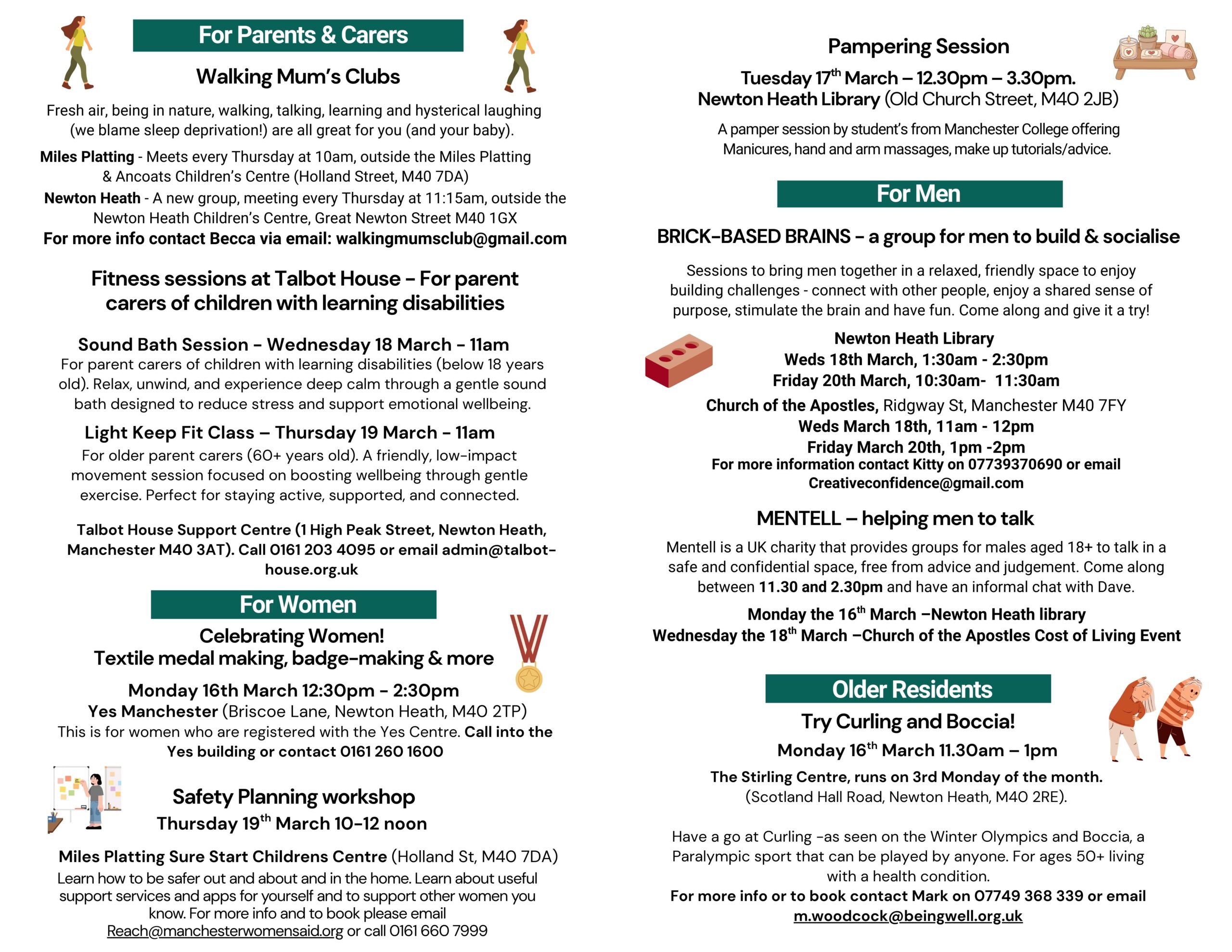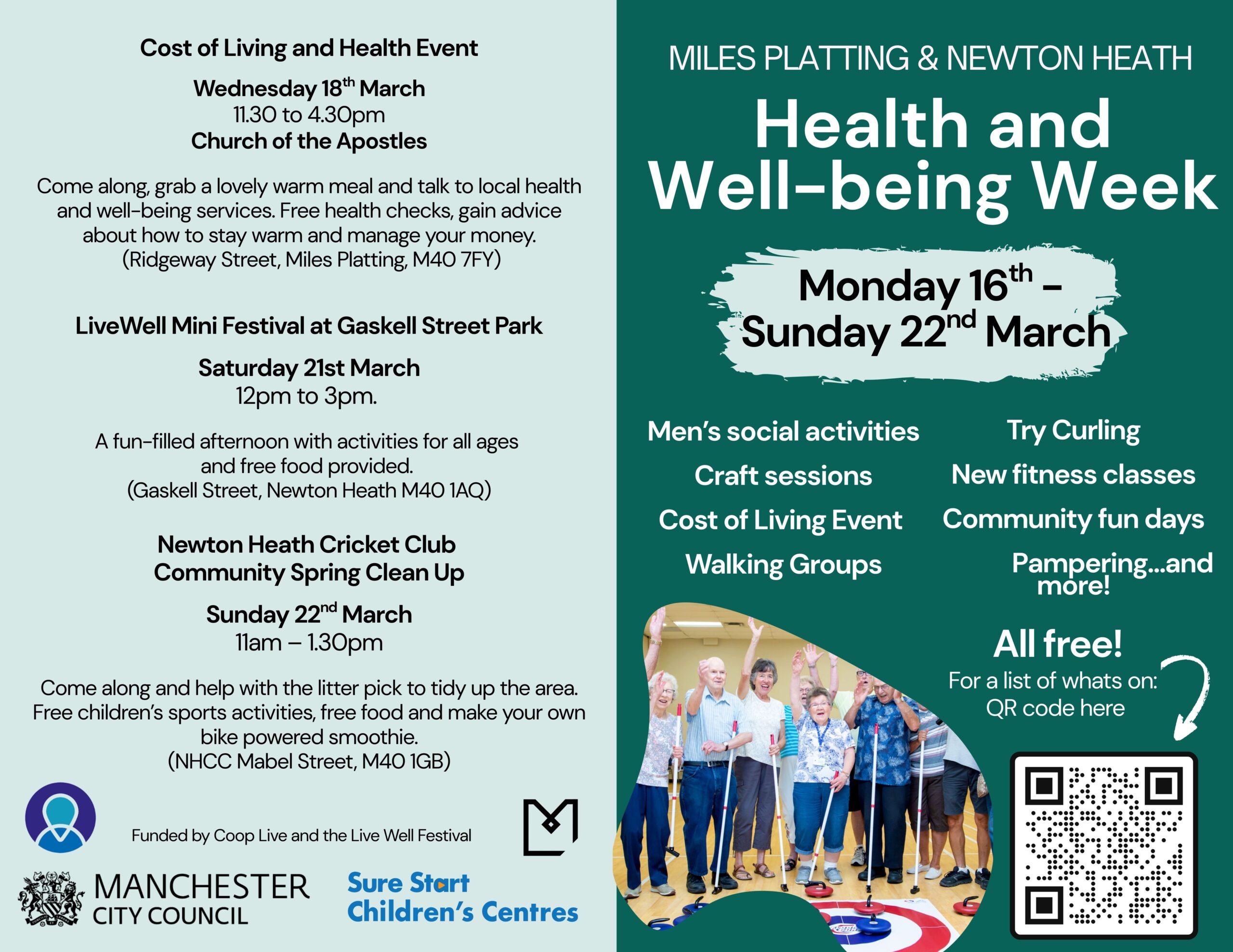 The Miles Platting and Newton Heath ward will be hosting a dedicated Health and Wellbeing Week from 16th to 22nd March 2026, offering a full programme of activities designed to support positive physical and mental wellbeing in the local community.