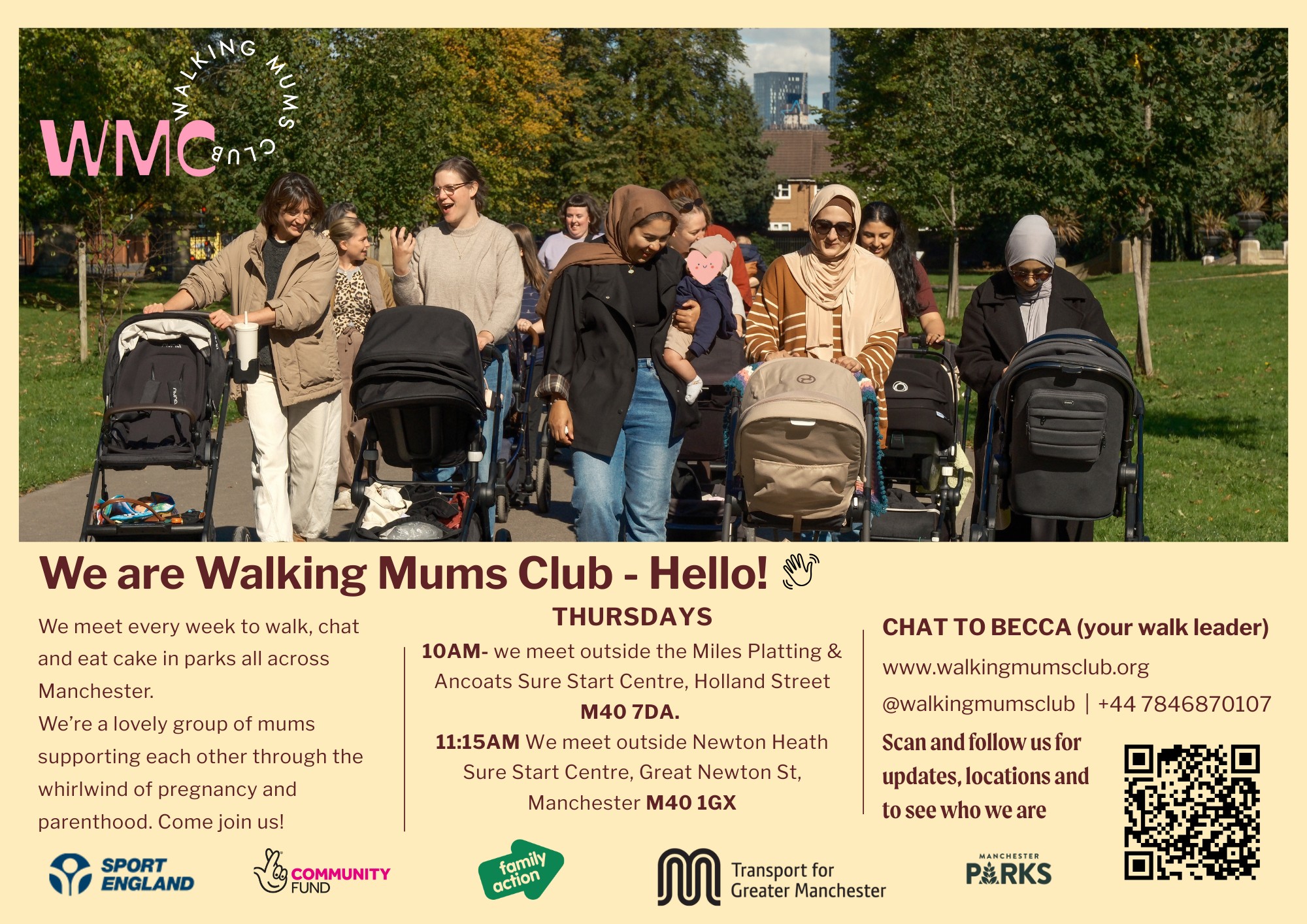 - Walking Mum’s Club (Newton Heath) – a friendly and supportive walking group for mums.